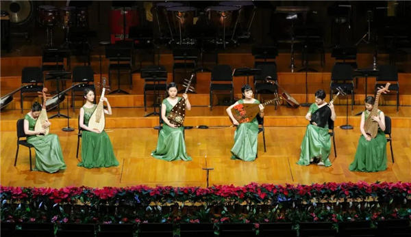音乐会在一曲琵琶重奏《梦入江南》的乐声中拉开序幕,取材于江南民歌和评弹的乐曲在舞台上“描绘”出一幅秀美的江南图景。琵琶齐奏《柳青娘》古朴、端庄、细腻,是本场音乐会中最能够展示经典、关照传承的曲目。中央音乐学院教授樊薇携三位年轻演奏家带来琵琶重奏《夏》,这部作品选自琵琶四重奏《人间四季》,是作曲家孙晶历时8年打造的一组室内乐作品。琵琶、钢琴与弦乐四重奏《绽放》在琵琶演奏家赵聪指尖的弦音与西洋音乐在碰撞与融合中绽放了如诗般唯美。在观众的欢呼声中,赵聪再次携5位演奏家奏响《梁山伯与祝英台》,琵琶、钢琴与弦乐的组合赋予这首经典曲目新的意蕴和音色。《十面埋伏》采用不同于以往的编排演奏方式,在琵琶演奏家章红艳的带领下,琵琶演奏家们联手呈现出这首著名琵琶传统大套武曲的全新意境。
