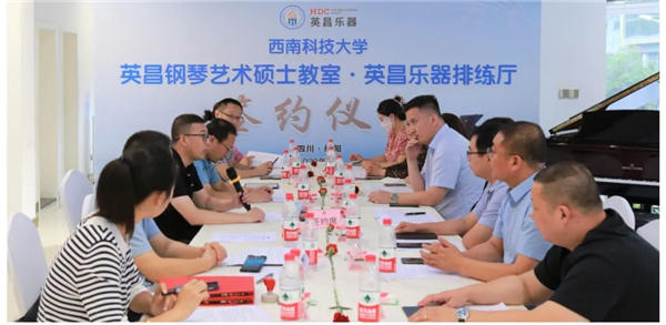 在仪式上,西南科技大学文学与艺术学院和英昌乐器签署了《共建艺术硕士教学实践基地暨设立“英昌乐器排练厅”和“英昌钢琴艺术硕士教室”的战略合作协议》;随后双方领导和嘉宾分别为“英昌钢琴艺术硕士教室.英昌乐器排练厅”、“西南科技大学文艺学院艺术硕士教学实践基地”、“西南科技大学文艺学院校企战略合作单位”、“西南科技大学文艺学院英昌钢琴艺术硕士使用品牌”揭牌和授牌,学校校友办领导也为企业颁发了“捐赠证书”。