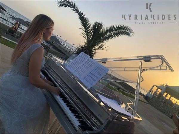 地中海的海边,独特的水晶三角钢琴成为了一道亮眼的风景线,在珠江钢琴集团塞浦路斯三大品牌的独家经销商Kyriakides Piano Gallery公司的精心准备下,钢琴在日落之前顺利抵达。