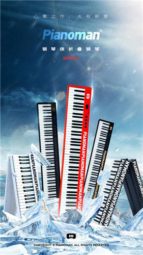 Pianoman钢琴侠折叠钢琴摆脱传统钢琴的笨重和昂贵,采用折叠造型,成为88键钢琴新物种。虽未上市,已经被各路明星、名人种草。钢琴侠以音乐兴趣不应被束缚的理念,意在让人人都能拥有钢琴、人人都能弹奏钢琴。随时随地想弹就弹,可以在露营、聚餐等场景下使用,也能在飞机、高铁上戴上耳机练琴。摒弃有线充电演奏方式,拥有超强的续航能力,满足5小时以上不插电演奏。