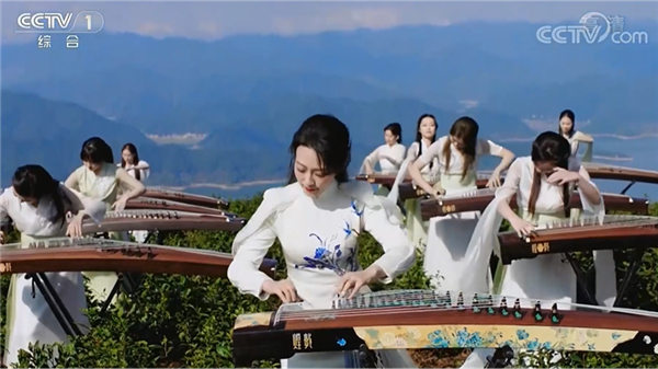 在央视跨年晚会的创意节目《山海万里》中,古筝演奏家李杨冠宇与虚拟演奏者辰安跨次元合奏,在真实和虚拟间,展现中国大好河山的无穷魅力。