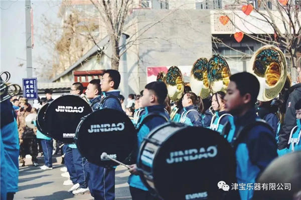 行进打击乐(英文Marching)源于军队,盛于校园,节奏明快,积极向上,集旋律、节奏、技巧、身法、队形变化于一身。特别强调团队意识和拼搏精神,其表演形式是在快速队形变换同时进行音乐演奏可以达到美育和体育的双重锻炼效果。津宝乐器及其组织成立的亚洲行进鼓乐联盟努力推动行进艺术在中国及其亚洲的繁荣发展。