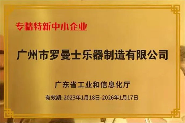 近日,广东省工业和信息化厅发布《关于2022年专精特新中小企业和2019年到期复核通过企业名单的通告》。广州市罗曼士乐器制造有限公司(简称“罗曼士"),荣获了2022年“广东省专精特新中小企业”荣誉称号。