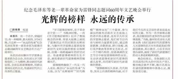 本场晚会的总策划、市学雷锋志愿者联合会会长侯志龙介绍,大型文艺演出是今年滕州市学雷锋志愿者联合会纪念毛泽东主席等老一辈革命家向雷锋同志题词60周年,认真落实习近平总书记近日对深入开展学雷锋活动重要指示精神的具体行动,举办本场文艺晚会就是为了更好的弘扬雷锋精神、更加深入的开展学雷锋活动,让雷锋精神永远传承。(滕州华彩琴行)