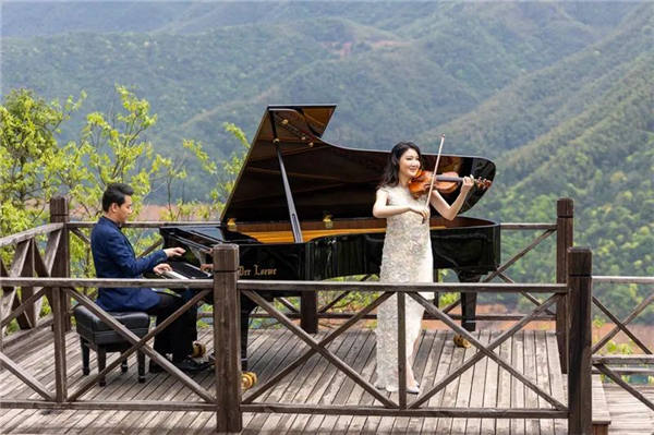 4月14日上午,在位于浙江省衢州市衢江区举村乡的乌溪江国家湿地公园观景台上,汪扬(汪洋)与阿其玛携手德洛伊钢琴联袂合奏《我爱你中国》,优美旋律回荡在乌溪江国家湿地公园的绿水青山间,把天下华人一家亲、同心热爱神州大地的赤子之情表现得淋漓尽致。