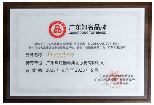珠江恺撒堡钢琴获评“广东知名品牌”-中国乐器协会