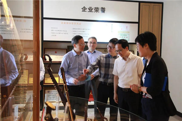 戴智书记一行观赏了民族乐器陈列馆展示的琳琅满目的民族乐器,并欣赏了企业旗下新艺民族室内乐团的演出排练。参观期间,企业党总支书记陈易灵向调研团队介绍了企业发展历程、制作技艺传承以及文化营销成果等方面内容。