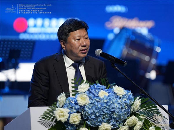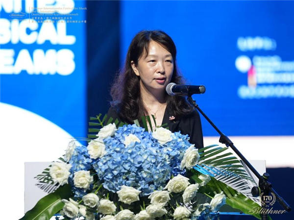 青岛自贸片区工委委员,管委副主任,青岛中德生态园工委副书记,管委常务副主任王莉在自贸青岛·博兰斯勒国际音乐节开幕仪式上致辞,热烈欢迎来自世界各地的钢琴大师以及参加本届公开赛的优秀选手与教师来到中国(山东)自由贸易试验区青岛片区,鼓励参赛的选手比赛中取得佳绩。德国博兰斯勒钢琴集团中国区总裁方阳以及第八届德国欧米勒(青岛)国际公开赛评委会艺术总监、中央音乐学院钢琴系主任韦丹文教授分别上台为开幕式致辞。在开幕仪式上的重头戏就王莉主任、张云清主任、杨燕迪院长、瓦娜莎·拉塔什主任共同为本届钢琴公开赛评委团的40位钢琴专家评委颁发聘任证书。