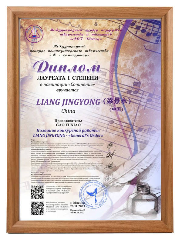梁景永获得2023俄罗斯国际作曲大赛一等奖-中国乐器协会