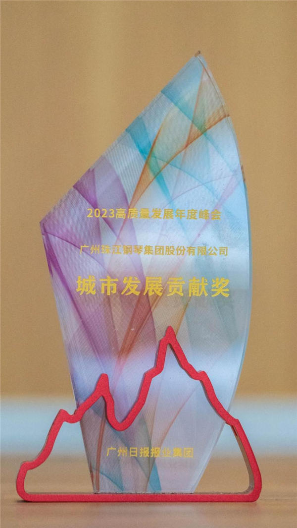此次峰会以推动城市高质量发展为目标,全面盘点2023年度高质量发展成果,表彰高质量发展活力品牌,分为城市发展贡献奖、经济发展贡献奖、幸福生活贡献奖、制造突出贡献奖、科技创新贡献奖等五大贡献奖项评选,其中,珠江钢琴集团荣获“城市发展贡献奖”,展现了珠江钢琴在多元经济形式下为广州高质量发展所做的贡献。