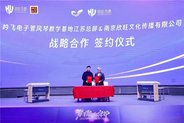 1月24日,吟飞电子管风琴教学基地江苏总部与南京欣旺文化传媒有限公司战略合作签约仪式盛大举行。这一合作意味着双方将强强联和,共同推动吟飞电子管风琴教育在江苏地区的普及和发展。