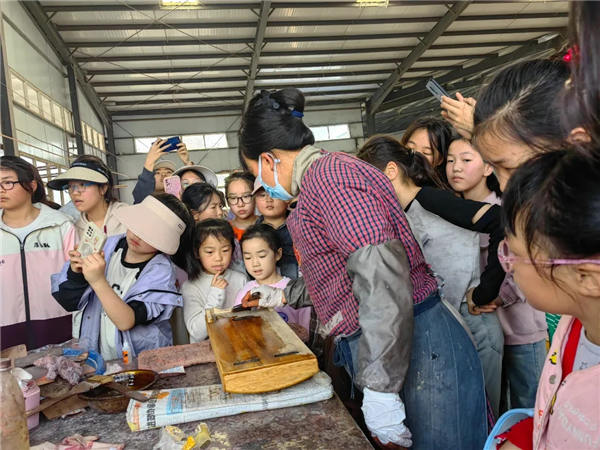 参观过程中,学生们在老师组织下拍照留念,用影像记录此次参观活动的美好瞬间。(中州民乐)