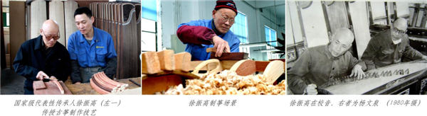 在跟随缪金林学做古筝的三年里,为了尽快全面透彻地学习、掌握制筝的技艺精髓,徐振高经常早上7点开始工作,直到晚上11点才收工。徐振高凭着踏实勤勉、不怕吃苦的秉性和不仅要“知其然”还要“知其所以然”的钻研精神,基本掌握了古筝制作技艺。除了学习制作,徐振高印象最深的就是听师父回忆关于大同乐会,关于卫仲乐、王巽之、罗松泉等名家的故事,其中许多有关民族器乐与乐器的见解,对徐振高的古筝制作有着很大的启发。