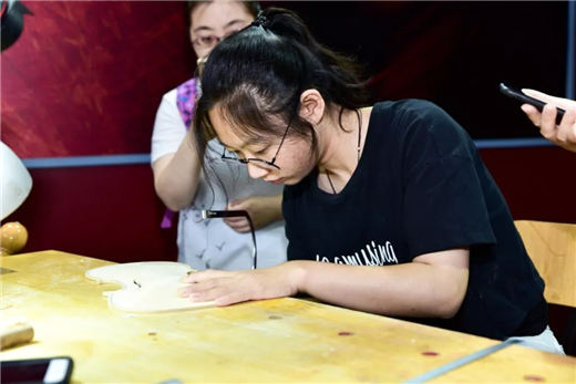 中央音乐学院提琴制作专业研究生朱方为带来小提琴F孔的绘制与制作;著名提琴制作师杨金龙演示大提琴面板制作。