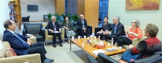 王世成理事长充分肯定了中美乐器协会双方多年来在会员交往、展会合作、高端论坛策划等多方面取得的成绩。会谈中,协会领导着重向美方初步介绍了2018中国国民音乐教育大会筹备方案并与NAMM初步达成合作共识,希望美方继续发挥战略合作伙伴作用,借力北京音乐生活展搭建的行业平台,与中国乐器协会协同配合精心组织策划好这一重要音教盛事。