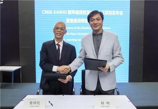 10月12日,CMIA KAWAI钢琴调律联盟标准培训认证项目发布会在上海召开。中国乐器协会理事长王世成、常务副理事长曾泽民,日本河合乐器制作所株式会社社长河合弘隆、统扩部部长西尾正由纪等领导出席。发布会由中国乐器协会钢琴调律师分会会长冯高昆主持。