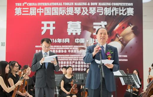 中国乐器协会网讯:由中国乐器协会、中央音乐学院联合主办,北京市平谷区中国乐谷、中央音乐学院提琴制作研究中心与中国乐器协会提琴制作师分会承办,中国黄桥乐器文化产业园管委会、江苏凤灵乐器有限公司、北京华东乐器有限公司等协办的第三届中国国际提琴及琴弓制作比赛开幕式于5月6日在京举行。中国轻工业联合会副会长、兼中国乐器协会理事长王世成,中央音乐学院院长俞峰,欧美同学会秘书长张学军,平谷区常委、区长姜帆,意大利使馆文化参赞stefania女士、中国乐器协会提琴制作师分会会长、比赛评委会主席郑荃,以及包括人民日报、新华社、光明日报、政协报、CCTV音乐频道等30余家媒体出席了开幕式。