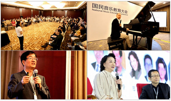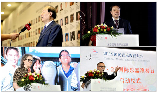 本届国民音乐教育大会由中央音乐学院、中国乐器协会、全国音乐教育服务联盟合作平台和上海国展展览中心有限公司主办,大会得到美国国际音乐制品协会、欧洲音乐产业联盟、国际音乐教育学会、国际键盘手风琴联盟大力支持,美国国际音乐制品协会选派著名国际音乐教育专家作主题发言和大师课。中国民族管弦乐学会陶笛专业委员会、北京学前教育委员会、北京乐器学会、辽宁乐器学会、江苏文化艺术科学技术协会和深圳乐器行业协会协办,各专业和地方协会以及世界著名音乐院校、企业团体的大力支持,彰显大会开放多元、国际化运作视野。中国轻工业联合会党委副书记、中国乐器协会理事长王世成,中央音乐学院党委书记、教育学家赵旻,美国国际音乐制品协会国际事务总监石碧天,上海国展展览中心有限公司总经理吴江红,中国舞蹈家协会会长冯双白,著名指挥家、中国音协管乐学会主席于海,国民音乐教育大会专家委员会主席、著名音乐教育家吴斌,美国国家音乐教师协会主席、美国宾州州立大学音乐教育专业教授琳达·桑顿等嘉宾莅临到会,开幕式由专家委员会主席、著名音乐教育家吴斌主持,中国轻工业联合会党委副书记、中国乐器协会理事长王世成宣布2019北京国际音乐生活展暨国民音乐教育大会隆重开幕。