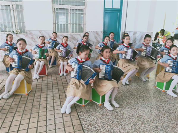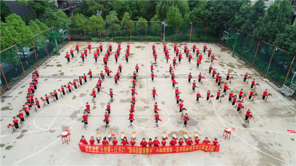 距离黄桥200公里的盐城市阜宁县,也是“6.21”活动的重要会场之一。从2017年开始,阜宁县教育局就组织全县的中小学参与“6.21国际乐器演奏日”活动,参与人数逐年增加,2017年是5.5万,2018年8.3万,2019年全县参与师生达到12万人。全县的学校校长(园长)、分管校长和音乐教研组长以及县有关部门领导都到场观摩。