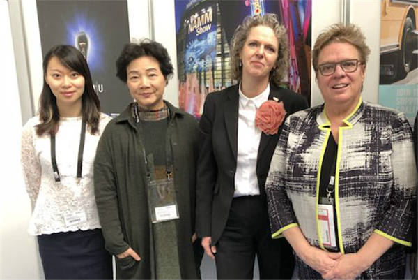 展会期间,中国乐器协会副理事长王松美与美国NAMM国际事务部主任石碧天(Betty Heywood)进行了会面,就今年7月将在北京举行的2018国民音乐教育大会以及10月上海乐器展的果然合作事宜进行商谈,包括涉及的演讲嘉宾、主题及其他相关细节等方面进行了交流。在展会现场,代表团一行还与捷克佩卓夫钢琴负责人Adam进行了会谈,就7月国民音乐教育大会期间,佩卓夫钢琴安排钢琴家在大会上进行工作坊讲座的相关事宜进行了沟通。
