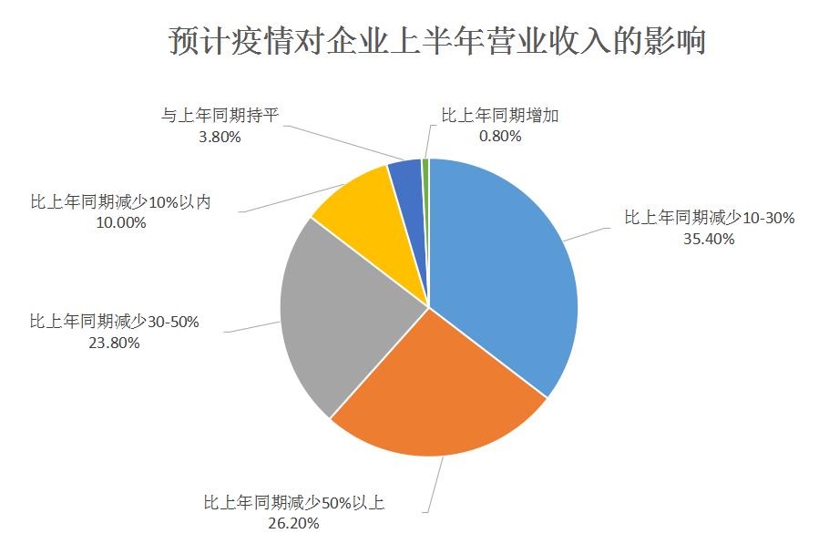 疫情的拐点还未出现,尽管各企业陆续复工复产,疫情给企业带来的影响也逐渐显现,尤其是以劳动密集为特征的乐器企业。本次调研中,35.30%的企业预计上半年营业收入同比将减少10%-30%,同比减少50%的占26.40%,仅有9家企业预计持平。