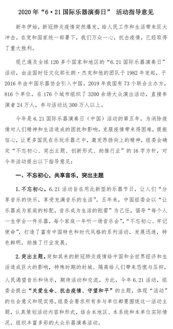 2020年“6·21国际乐器演奏日” 活动指导意见-中国乐器协会