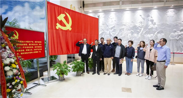 在瞻仰厅,耸立着周恩来和邓颖超的汉白玉雕像《情满江山》,两侧浮雕墙镌刻出五四运动、南昌起义、红军长征、西安事变和开国大典、祖国建设等历史性画面。在周恩来、邓颖超雕像前,全体党员干部面向党旗,在中国轻工业联合会党委委员、中国乐器协会党支部副书记孙瑞勇同志的带领下,重温入党誓词。向党许下庄严承诺,表达为党的事业奋斗终身的决心和愿望。