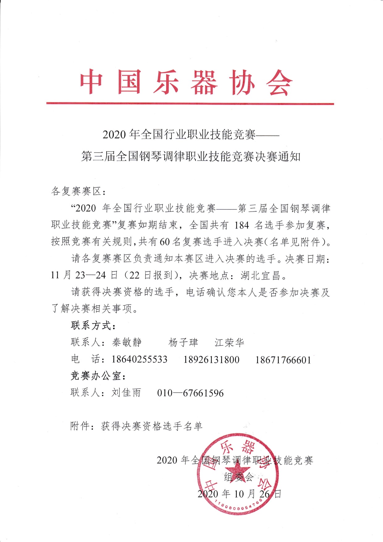 2020年全国行业职业技能竞赛——第三届全国钢琴调律师职业技能竞赛决赛通知-中国乐器协会