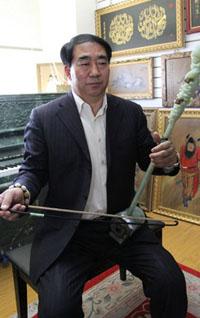 随着邵忠田玉石版画作品的丰富,各种展览活动也相继开展起来,为了给展览增添文化氛围,创造优雅的环境,邵忠田利用起自幼学习小提琴的基础,加上对音乐的喜爱,1996年开始研制玉制乐器,而二胡作为中国民乐的代表,则成为首选。