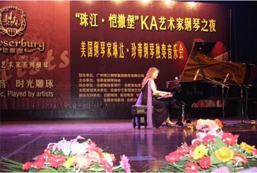 在“珠江·恺撒堡”KA艺术家钢琴之夜——美国钢琴家琳达•珍蒂钢琴独奏会上,“钢琴公主”琳达•珍蒂以大家非常熟悉的《拉德斯基进行曲》拉开演出的序幕,动人演绎《烈火战车》、《情归何处》、《我心依旧》流行音乐,以及巴赫、李斯特等大师的名曲。表演中西结合,中国民族音乐《梁祝》、《万水千山总是情》、《上海滩》、《茉莉花》、《月亮代表我的心》等经典乐曲均由其轻盈的指尖下悦动而至,另一种演绎令人惊异。充分体现出她作为钢琴表演大师的坚深功底和造诣,让现场两千多观众领略到美国现代浪漫钢琴音乐潮流。珠江·恺撒堡KA艺术家系列钢琴以非凡的弹奏性能,完美呈现“钢琴公主”的非凡魁力和超常的音乐表现力。