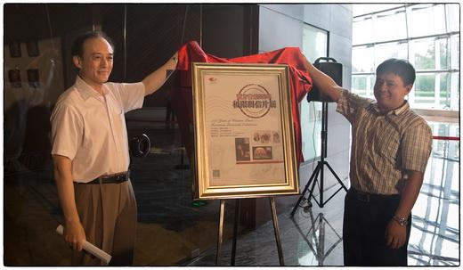 国家大剧院副院长王争鸣与北京一轻控股有限责任公司副总经理袁新民为展览揭幕