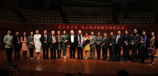 音乐会后,还举行了2016年度“最美志愿者”的颁奖仪式,以此表达对志愿者的崇高敬意。获得2016“爱只因有你—最美志愿者”称号的嘉宾既有钢琴教育家李名强、电影配音艺术家乔榛等老一辈艺术家,也有青年钢琴家元杰、张乐及芭蕾舞表演艺术家邱思婷等后起之秀;既有首都师大附中校长沈杰、安外三条小学校长程红、史家小学特级教师王欢、清华大学艺术教育中心主任赵洪等教育战线上的杰出代表,也有中央电视台新闻主播吴鹏、中国残疾人艺术团副团长王晶、爱心企业家林纯、环球网对外合作部总监窦佳丽、北京甘肃商会副会长黄登峰、北京亮彩一品广告公司董事长施胜国、崔永元公益基金秘书长李国武等来自社会各界的爱心人士。他们共同组成了最美志愿者团队,以“爱只因有你”之名,贡献力量,传播公益心。
