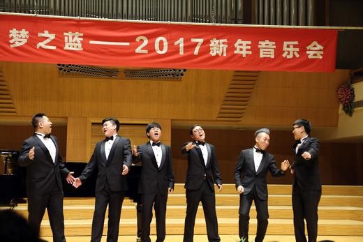 为坚持高端艺术品质,以高雅艺术服务人民大众,1月2日、3日,在著名作曲家、指挥家徐锡宜执棒下,中国音乐家协会爱乐男声合唱团在北京音乐厅连续义演两场“中国梦·梦之蓝2017新年音乐会”。演出现场,合唱团以昂扬向上的恢弘气势带给观众正能量的艺术享受。