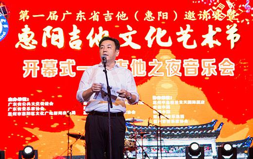 广东省公共文化促进会会长严健强代表主办单位致开幕辞,高度评价本届艺术节的成功举办是惠阳区经济和社会发展尤其是文化建设工作中的一件大事、喜事、盛事,是推动惠阳吉他产业和吉他文化艺术融合发展的一项重要举措。希望惠阳吉他产业借艺术节平台,有力打造惠州的文化名片。