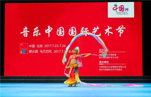 展示中蒙特色文化成为此次活动的重要内容。北京主会场上,乐器演奏、模特走秀、群众合唱、风情舞蹈等多种艺术表演形式体现出浓郁的中蒙文化交流特色。各地选送的优秀展演节目《草原欢歌》、《新贵妃醉酒》、太极表演等诸多节目博得在场观众阵阵好评,此次艺术节为中蒙人士展示自我、交流技艺、切磋艺术提供了良好平台。音乐中国国际艺术节借助“一带一路”区域合作平台,借用古代丝绸之路的历史符号,积极发展与沿线国家的文化艺术交流,弘扬民族艺术特色,唱响“草原丝绸之路”赞歌。