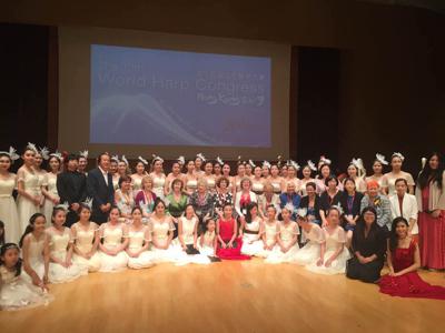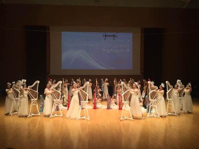 “世界竖琴大会”创会于荷兰,由50多个国家参加的非赢利性的文化学术组织。每三年一届在世各地的举办。在香港回归20周年之际,“一带一路”的大好形势背景下,世界竖琴大会创会40多年来亚洲地区首次获得承办权,在中国香港举办“第十三届世界竖琴大会。两年前大会组委会就向全世界发出征选大会开幕式节目,在众多的报送的节目当中,沈阳音乐学院弘韵箜篌乐团报送的带有丝绸之路文化基因的箜篌表演最终被大会组委会确定为令人睹目开幕式音乐会主场表演节目。因为是代表中国,其意义非比寻常!责任重大,因此两年前就开始筹备表演使用的乐器了,并进行人员培训节目排练,尽一切努力作到完美。在紧张的筹备中克服重重困难和障碍7月7日到来了。当第十三届世界竖琴大会开幕式音乐会演岀果然不负众望,产生了前所未有的轰动效应!大会其间国外一些竖琴演奏家和竖琴制造师们络绎不绝,争先恐后来弹奏品赏箜篌。一位法国著名竖琴演奏家,卡玛卡竖琴厂老板杰克斯,弗朗索瓦斯在网上发文说,“自从20年前第一次听到箜篌的声音,我就意识到这是一个完美的乐器。对于即兴演奏,它具有完美的低音,完全可以与低音电吉他媲美, 而且箜篌的特点是它的音高的可变.....可以转调。 非常有趣的是它的踏板组合,有两排弦组合方式可以改变每一根弦的音高。 在我有机会接触到箜篌的时候,我非常渴望了解箜篌而且想了解怎么演奏它”