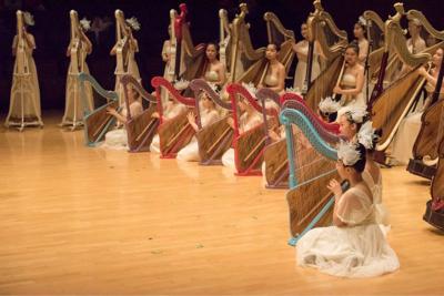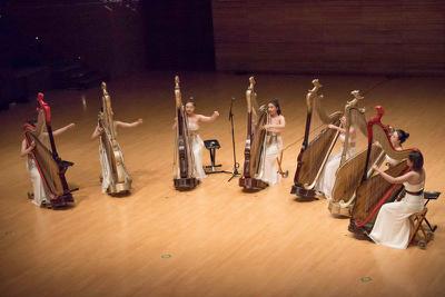 此次参加第十三届世界竖琴大会开幕式音乐会,沈阳音乐学院弘韵箜篌乐团带来全新创作的音乐作品,七重奏表演,有西域风情的《阳光》依据戏曲元素创作的《夜幻》具有现代作曲手法创作的探索性作品《和呜》《凌之境》回味无穷的《梦回龟兹》特别是赵广运教授还专门为世界竖琴大会创作中国特色的主题歌《竖琴家族欢聚香港》和《欢迎你到中国来》由来自七个省市地区10几位箜篌同行进行了临时排练加入到了弘韵箜篌乐团演岀,演出现场使了用了37台大小箜篌进行乐舞表演 ,将开幕式的演出推向了最高潮,雷鸣般掌声随着音乐表演的节奏伴着整个乐舞表演的全过程。群情激奋,现场来世界各地的竖琴家沸腾之极!掌声久久不断……